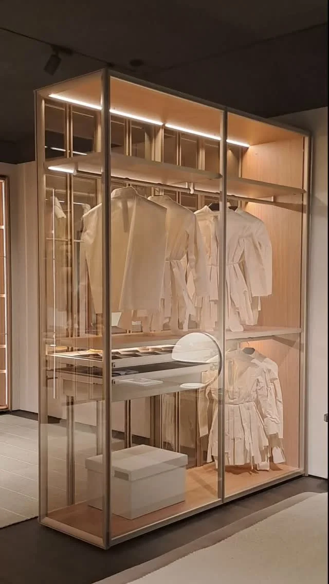 Transformation d’une pièce en dressing avec armoires et espace “beauty”.